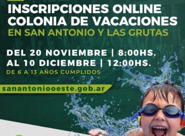 La Dirección de Deportes del Municipio San Antonio informa que el lunes 20 de noviembre desde las 8:00 hs y hasta el domingo 10 de diciembre a las 12:00 hs, se encontrarán abiertas las inscripciones On-Line para las Colonias de Vacaciones 2023-2024 en San Antonio Oeste y Las Grutas; el […]