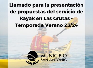 La Secretaría de Gobierno del Municipio San Antonio realiza el llamado a interesados en la explotación del servicio de alquiler de unidades de embarcación kayak, en la Tercera Bajada de Las Grutas, durante el periodo de la Temporada de Verano 2023/2024.