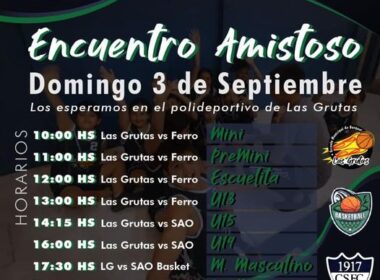 Con el acompañamiento de la Dirección de Deportes, este domingo 03 de septiembre, el Polideportivo Municipal de Las Grutas será sede de un nuevo Encuentro Amistoso de Básquet que tendrá la participación de las Escuelas Municipales de Las Grutas, San Antonio Oeste y el Club Sportivo Ferrocarril.
