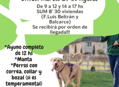 Zoonosis Municipal, dependiente de la Secretaría de Gobierno, llevará adelante dos jornadas de castraciones masivas para perros y gatos en el sector de las “30 Viviendas” del barrio “El Progreso” de San Antonio Oeste, los días lunes 28 y martes 29 de agosto.