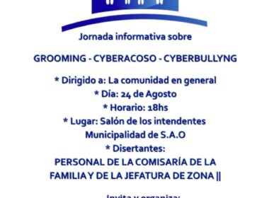 El Consejo Local de Seguridad Ciudadana invita a la comunidad en general a la jornada de capacitación sobre Grooming, Cyberacoso y Cyberbullying que se realizará este jueves 24 de agosto a las 18:00 hs en el Salón de los Intendentes de la Municipalidad de San Antonio Oeste, ubicada en Brown […]