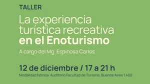 Durante el mismo se abordarán las temáticas vinculadas a la conceptualización de experiencia turística recreativa, vinculación entre enoturismo, gastronomía, patrimonio industrial y el desarrollo productivo regional, integración entre producción y creación de experiencias, ruta turística y experiencias y la experiencia enológica y su articulación con diversos sectores de la cadena de valor del turismo.