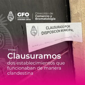 La dirección de Comercio y Bromatología de la Municipalidad de Fernández Oro clausuró dos establecimientos que funcionaban de manera clandestina.