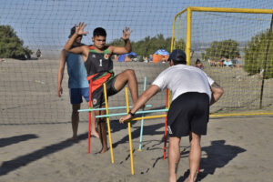 La clínica es llevada adelante por la Fundación Patagonia Deportes de Arena con el acompañamiento de la Secretaría de Deporte, comenzó este jueves y continúa hoy viernes dictando la parte teórica en el salón del Casino del Río de El Cóndor y la práctica en la cancha emplazada junto al parador Al Reparo.