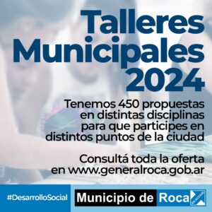 General Roca – Este año el Municipio ofrece una variada oferta de Talleres con 450 propuestas que abarcan diferentes disciplinas como Deportes, Cultura, Arte, Oficios y Tecnología, y que se desarrollarán en distintos puntos de la ciudad como Polideportivos, Centros Comunitarios, CEMAR, Centros Integradores Municipales, CEPLA, IMBA, Punto Digital, Plazas y Playones, Centros Deportivos, entre otros.