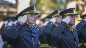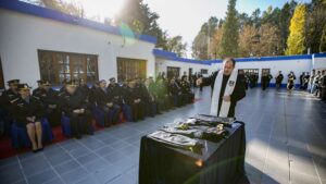 En tanto, la superintendente de Apoyo y Servicios, Rosana Bello, expresó que “hoy compartimos y tenemos el honor de ser testigos de uno de los momentos más importantes para los ingresantes en la Escuela de Cadetes de Policía quienes están asumiendo el desafío de convertirse en guardianes de la paz y el orden en nuestra sociedad. Al estar dispuestos a poner sus vidas al servicio de los demás, el uniforme que reciben hoy no es solo una vestimenta, es un símbolo de honor, sacrificio y responsabilidad”.