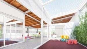 – Patios internos que adecuan las condiciones ambientales requeridas, que contarán con espacios lúdicos y con juegos infantiles.