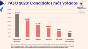 Bermolén recuerda que “las elecciones PASO 2023 también han marcado el record histórico de ausentismo para una elección de índole presidencial (primaria o general) llegando al 29,55% de deserción”.