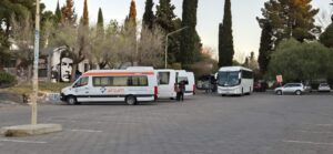 Las delegaciones comenzaron a llega desde temprano al playón de la sede central de la UNCo,