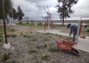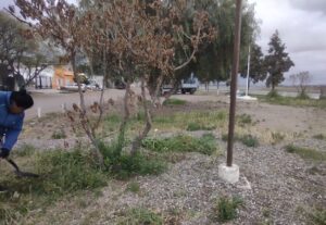 La Secretaría de Servicios Públicos continúa en la jornada de este martes con el desmalezamiento, limpieza y acondicionamiento en general de plazas y espacios verdes de San Antonio Oeste.
