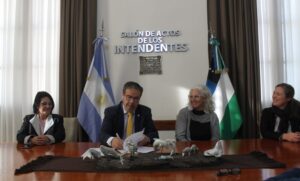 Este lunes por la mañana el Intendente Municipal, Adrián Casadei, junto a la Coordinadora del Consejo Escolar Zona Atlántica I, Edith Correa, y representantes del Centro de Educación Técnica N°32, firmaron el convenio que establece el permiso para el uso de las cocinas industriales de la institución educativa para que emprendedores que participen del Mercado/Feria MultiplicAR puedan elaborar alimentos para su comercialización.
