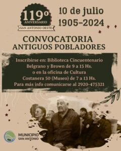 En el marco del 119 aniversario de San Antonio Oeste, la Dirección de Cultura junto a la Comisión de Asuntos Históricos Municipal, agasajan a los antiguos pobladores de nuestro ejido.