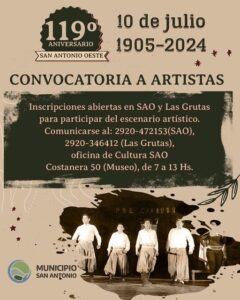 En el marco del 119° aniversario de San Antonio Oeste, la Dirección de Cultura invita artistas de los tres centros urbanos a formar parte de las celebraciones de cumpleaños de la ciudad.