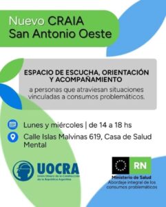 El CRAIA es un espacio de escucha, orientación y acompañamiento destinado a personas que atraviesan situaciones vinculadas a consumos problemáticos.