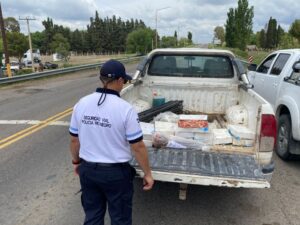 Al realizar la verificación correspondiente, los efectivos observaron en la caja del rodado una red de pesca y varias cajas conteniendo productos del mar, manifestando el conductor que se trataba de langostinos destinados a consumo personal.