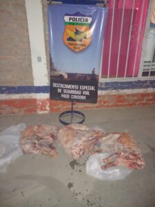 El Cuerpo de Seguridad Vial de Paso Córdoba secuestró tres ovinos faenados de aproximadamente 10 kilogramos cada uno, durante un control vehicular y de personas desarrollado en la Ruta Provincial 6.