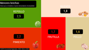 Por su parte, el repollo y la frutilla también incrementaron sus precios en ambos extremos de la cadena: 7% y 10,2% al productor, mientras que en góndola presentaron una suba del 37% y 1,4% respectivamente.