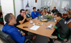 Los deportistas estuvieron acompañados por sus entrenadores, Marcelo Ruíz Díaz de los nadadores y Javier Carriqueo, del atleta, quienes fueron recibidos por la ministra de Deportes, Alejandra Piedecasas. Durante el encuentro los deportistas contaron sus experiencias y hablaron de los próximos desafíos.