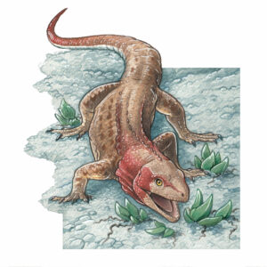 Se trata del Alamitosphenos mineri, que fue encontrado en la Estancia Nueva Poupée, cerca de la localidad de Arroyo Ventana. Esta especie de reptil poseía una mandíbula fuerte, formaba una especie de mentón prominente y sus dientes eran bajos y anchos.