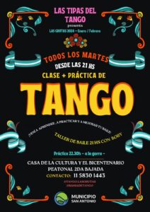 La Dirección de Cultura invita a partir de hoy y todos los días martes a las clases prácticas de tango en la Casa de la Historia y la Cultura del Bicentenario en la segunda bajada de Las Grutas.