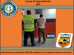 Al consultar los antecedentes de los ocupantes a través del sistema SIFCOP, se detectó que uno de los pasajeros, también de sexo masculino y oriundo de Lamarque, posee un pedido de captura vigente desde el 02/07/21, emitido por el Juzgado Federal de General Roca.