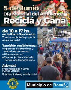 General Roca – En el marco del Día mundial del Ambiente, la Dirección de Ambiente Municipal propone para mañana miércoles 5 de junio una jornada de recolección de ecobotellas en el marco del Programa Educativo Reciclá y Ganá.