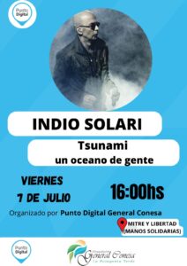 General Conesa.- El viernes 7 de Julio, a partir de las 16:00 hs, te invitamos a participar y disfrutar del documental llamado “Tsunami, Un océano de gente” realizado por Vorterix sobre el recital que dio el Indio Solari en Tandil el 12 de Marzo de 2016.
