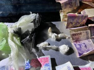Además, dentro de una cartuchera de maquillaje se hallaron envoltorios con sustancia vegetal y polvo blanco, presuntamente cannabis y clorhidrato de cocaína, por lo que intervino la Justicia Federal y se dispusieron las actuaciones correspondientes.