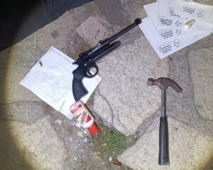 En su poder tenía un martillo y una pistola de aire comprimido. El propietario del lugar radicó la denuncia correspondiente y no constató faltantes.