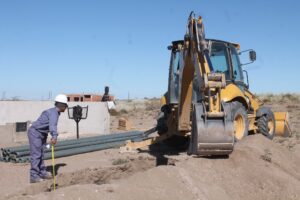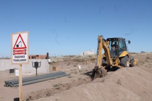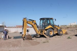 De esta manera, trabajadores iniciaron las tareas sobre el suelo con la máquina retroexcavadora para incorporar los caños subterráneos que conducirán el agua a cada vivienda y lote.