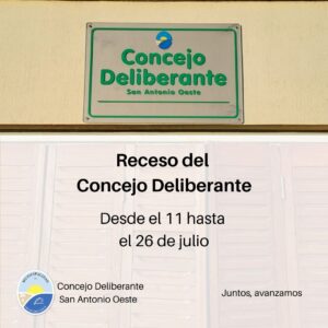 Desde el martes 11 y hasta el viernes 26 de julio de 2023 inclusive, los integrantes del Concejo Deliberante se encuentran de receso.