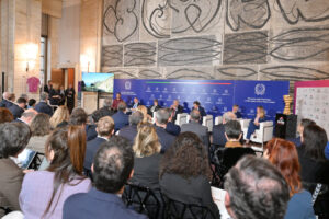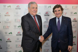Roma – “Il 107° Giro d’Italia. L’Italia che corre” se celebró en la Sala Mosaici de la Farnesina (Ministerio de Asuntos Exteriores italiano), ante un público compuesto por representantes de organismos deportivos y federaciones, los principales órganos de prensa y las empresas que apoyan la organización del Giro. Durante el evento, el Ministro de Asuntos Exteriores, Antonio Tajani , entregó un pergamino y una placa al presidente de RCS MediaGroup, Urbano Cairo, para conceder al Giro de Italia el título de Embajador de la Diplomacia Deportiva. Por su parte, Urbano Cairo obsequió al Ministro una Maglia Rosa personalizada.