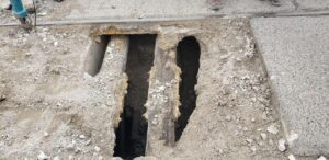 Producto de las lluvias y las filtraciones, ese material se lavó, socavando el compartimento que da soporte a las losas, produciendo un espacio hueco de considerable dimensión.