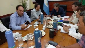En reunión de la Mesa de la Función Pública estuvieron presentes el Ministro de Economía, Luis Vaisberg; y su par de Gobierno y Comunidad, Rodrigo Buteler; y la Secretaria de la Función Pública, Liliana Arriaga, junto a los representantes de ATE, Rodrigo Vicente; y de UPCN, Luis Rosas.