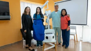 El equipamiento entregado incluyó un equipo de rayos rodante con disparador digital, apto para radiovisiografo (RVG) y dos modos de disparo (pulsador manual con cable extensible y/o control remoto).