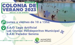 Coordinado por la Dirección de Deportes, el día lunes 09 de enero comenzará las Colonias de Verano 2023 en San Antonio Oeste, Las Grutas y San Antonio Este.