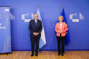 El presidente Alberto Fernández se reunió hoy en el edificio Berlaymont de Bruselas con la presidenta de la Comisión Europea, Ursula von der Leyen, donde firmaron un Memorándum de Entendimiento sobre Cooperación en materia de energía entre la Argentina y la Unión Europea.