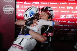 La subcampeona, Katarzyna Niewiadoma, comentó: “No sé si estoy satisfecha. Obviamente, quedar segunda y celebrar una victoria son cosas muy diferentes. Llevo muchos años persiguiendo la victoria aquí. Es un poco desgarrador, pero por otro lado, también es hermoso estar en el podio. La carrera empezó de verdad en el tramo de grava más largo, Monte di Sante Marie. Fue una locura y un caos entrar en el sector porque todas querían estar delante. Hubo algunas caídas. Me quedé atrapada. Todo se centraba en perseguir y la carrera empezó desde ese momento. Me encanta el ambiente. ¡Había muchísimo ruido en Le Tolfe! Para nosotras, las mujeres, experimentar esa energía es para lo que entrenamos. Hace que el dolor desaparezca”.