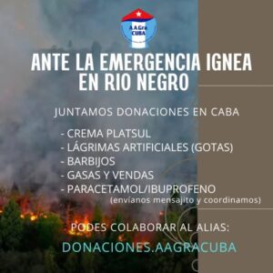 Desde Agrupación Argentinos Graduados en Cuba, nos sumamos a la causa para ayudar a nuestros compatriotas afectados por los incendios forestales en la zona cordillerana de Río Negro.