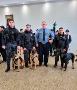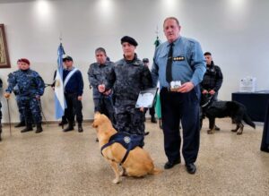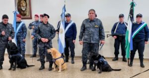 Antú, Charlie y Rocco, tres perros que cumplieron funciones en la Policía de Río Negro durante ocho años fueron honrados en un conmovedor acto de retiro desarrollado en la mañana de este miércoles en Cipolletti.