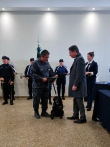 Asimismo, en la ceremonia se destacó el nombramiento de Rocío Ibáñez, quien se convirtió en la primera médica veterinaria en formar parte de la fuerza rionegrina.