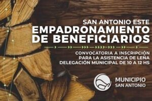 La Delegación Municipal de San Antonio Este, en conjunto con la Secretaría de Desarrollo Social, convocan a aquellas familias que requieran la asistencia de leña para anotarse en el padrón y de esta manera, recibir el beneficio entre los meses de mayo a agosto inclusive.