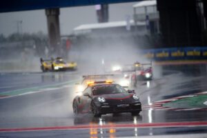 Inesperadas lluvias en Texas provocaron que la primera parte de la competencia de seis horas se desarrollara detrás del Auto de Seguridad y, tras una interrupción con bandera roja, la acción finalmente comenzó justo antes de completar un tercio de la carrera.