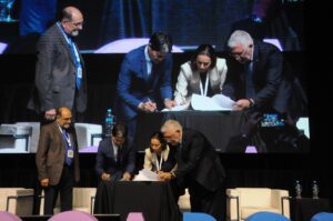 Cabe destacar que, en el marco del foro, González y Diab firmaron un convenio con la responsable de Atención a Socios de la Cámara Nacional de Comercio y Servicios del Uruguay, Natalia Cladera. El acuerdo rubricado contempla la promoción y el desarrollo del comercio en los cascos históricos y los CCA de ambos países. Además, acciones conjuntas que contribuyan a mejorar los entornos comerciales de los centros comerciales abiertos de los dos lados de la frontera.