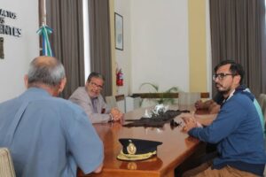Este martes, el Intendente Municipal Adrián Casadei se reunió con Jorge Balazs, jefe Zona II de la Unidad Regional Primera junto a importantes miembros de la mutual policial de la policía de Río Negro en el salón de los intendentes del Palacio Municipal. Entre los asistentes se encontraban Mario Benítez, presidente; Hugo Cornelio, Secretario; Luis Santucho, Tesorero; y Emilio Gómez, Delegado local.