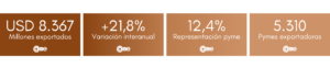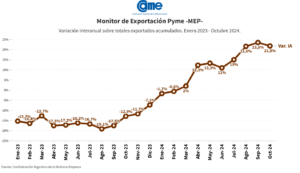 Las exportaciones de las empresas pymes crecieron 21,8%, alcanzando los USD 8.367 millones, lo que representa el 12,4% del total exportado por la Argentina en el periodo enero – octubre 2024.