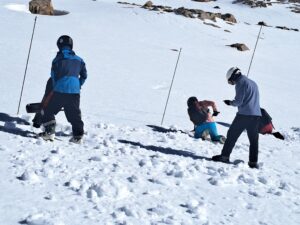 El taller, titulado Seguridad en Terreno Nevado, se desarrolló en dos instancias complementarias. La primera, de carácter teórico, tuvo lugar en el gimnasio del CRUB, donde se abordaron los fundamentos del rescate en avalanchas, el uso de dispositivos de localización y las estrategias de intervención en terreno. La segunda jornada trasladó el aprendizaje al corazón de la montaña: en la zona de Punta Princesa del Cerro Catedral, se desplegaron tres estaciones de trabajo que simularon escenarios reales de emergencia.