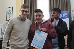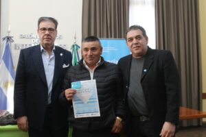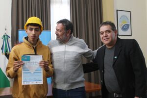 El Intendente Municipal, Adrián Casadei, junto al Ministro de Trabajo de Nación Agencia Territorial Viedma, Fernando Fuentes, y el Secretario General de la Unión Obrera de la Construcción de la República Argentina (UOCRA) seccional Viedma, Damian Miller, encabezaron el acto de entrega de certificados y credenciales de los cursos de formación profesional en albañilería y hormigón que se iniciaron durante el mes de julio, con un cursado de 163 horas y una duración aproximada de tres meses y medio.