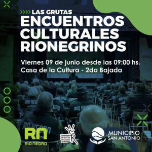 La Dirección de Cultura del Municipio San Antonio informa que este viernes 9 de junio a partir de las 9:00 hs en la Casa de la Historia y la Cultura de Las Grutas, Segunda Bajada, se llevará adelante las instancias locales de los “Encuentros Culturales Rionegrinos”.