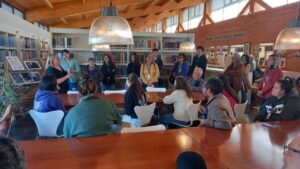 El grupo fue recibido por la responsable de la biblioteca Marisa Velasco Aldao, quien relató la historia del lugar y el trabajo que allí se realiza. Marisa resaltó: “No hay que naturalizar la educación pública”, en tanto bien social que existe gracias a los procesos sociales y políticos.